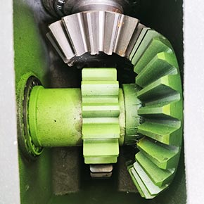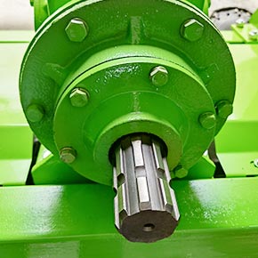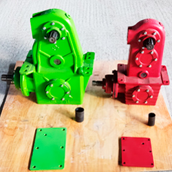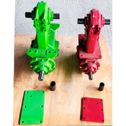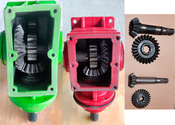 Усиленный редуктор визуально больше, входной вал для карданного вала 8-ми шлицевой диаметром 48 мм, мощные большие шестерни, редуктор к раме крепится на 8-и болтах М18.